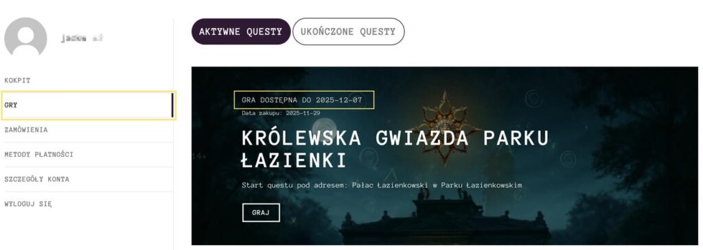 Możesz grać w grę w dowolnym czasie i tempie, które ci odpowiada. Jeśli nie uda ci się ukończyć gry za pierwszym razem, możesz wrócić do niej innego dnia (w panelu użytkownika pojawi się przycisk „Kontynuuj”).
